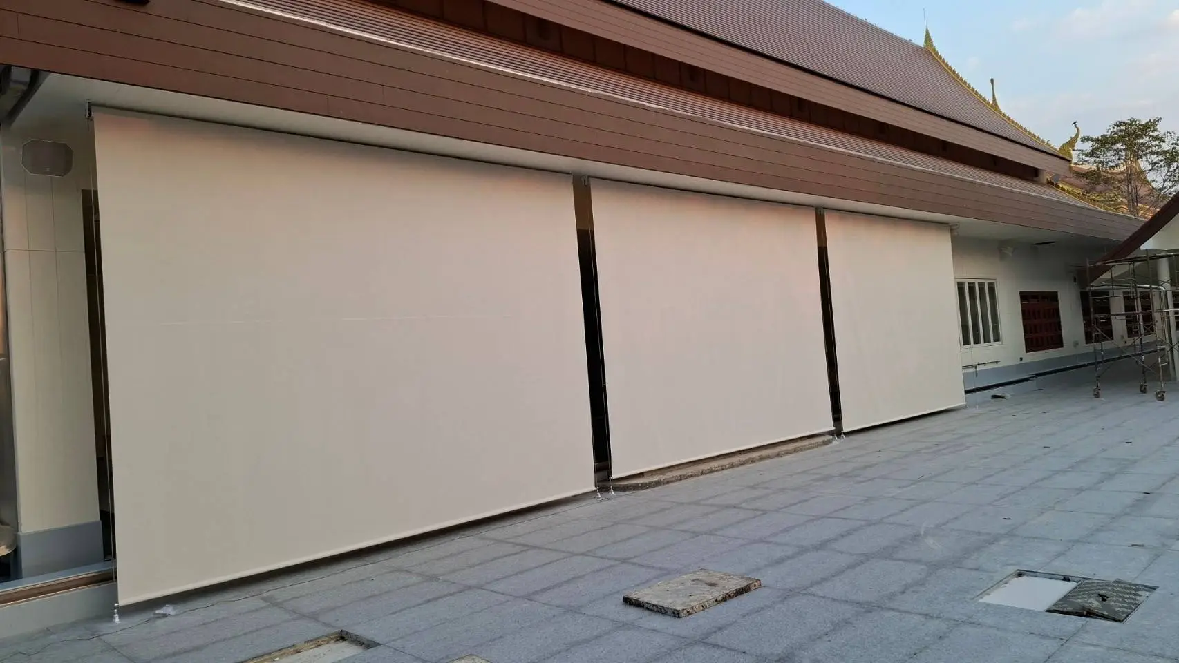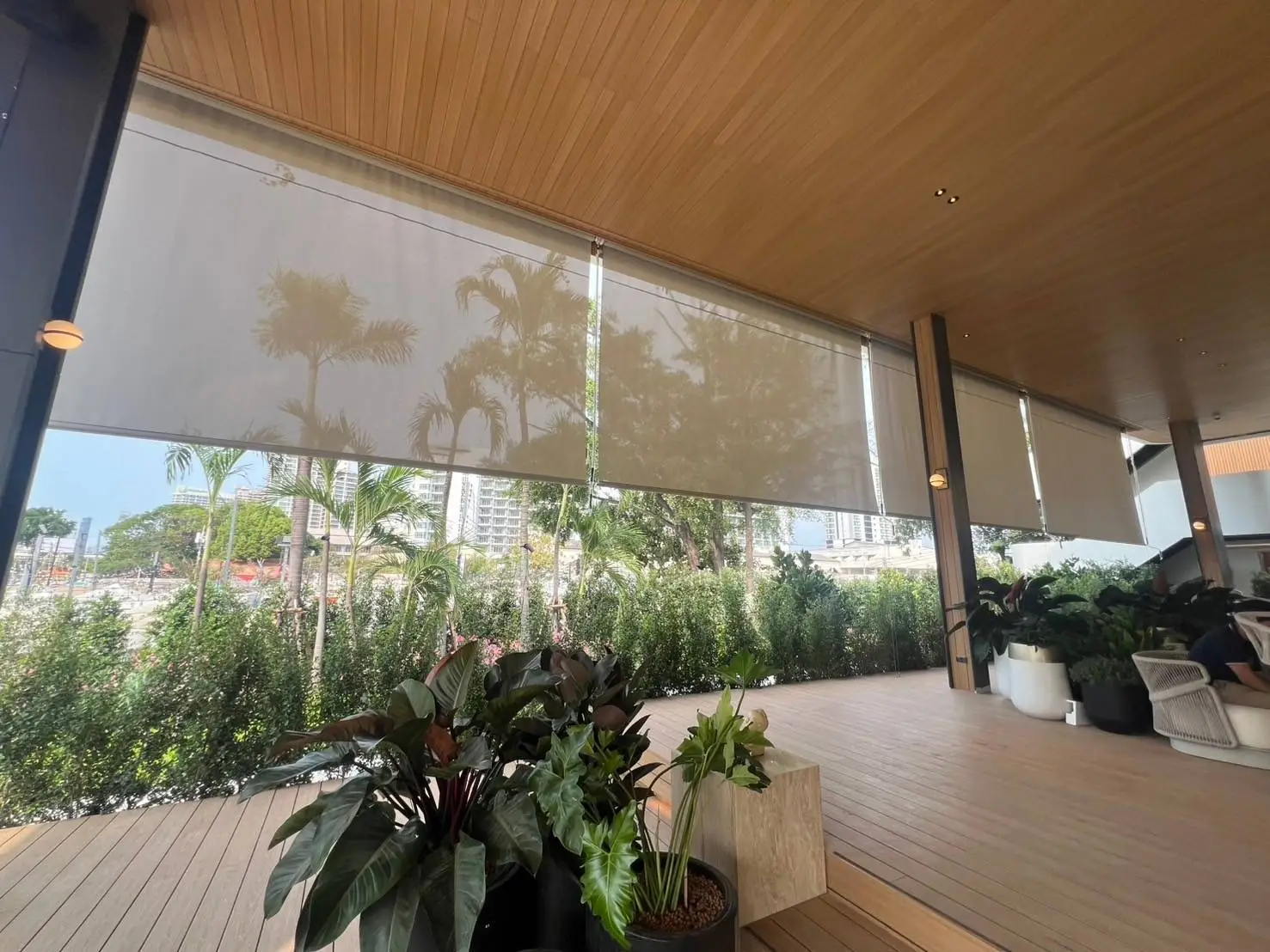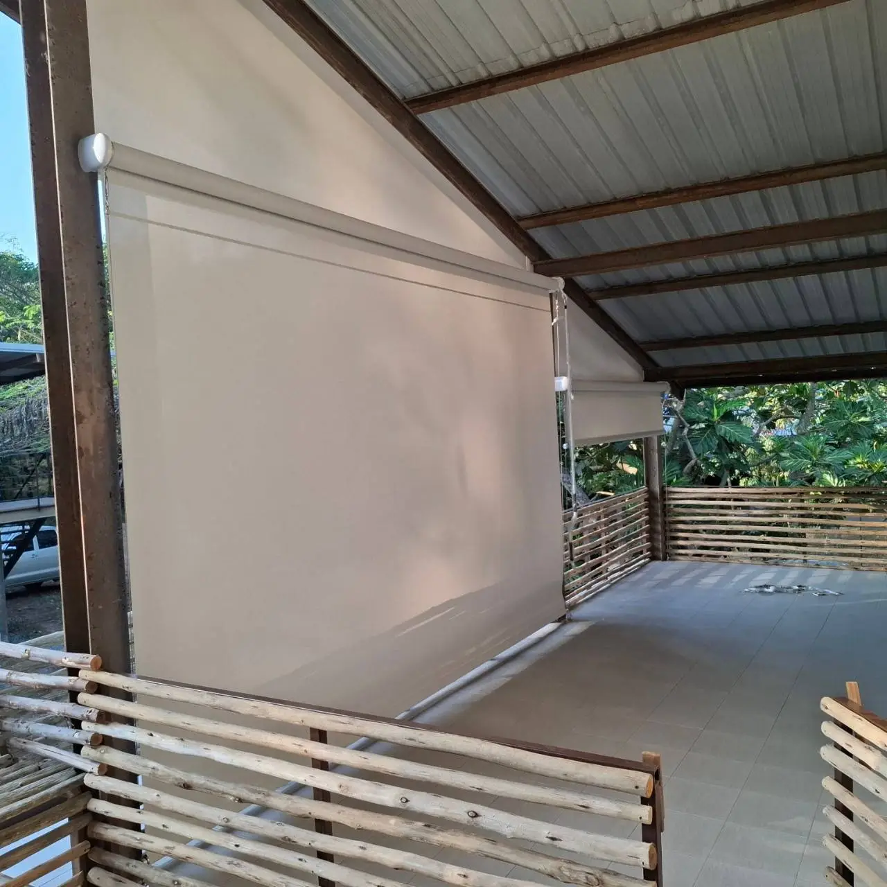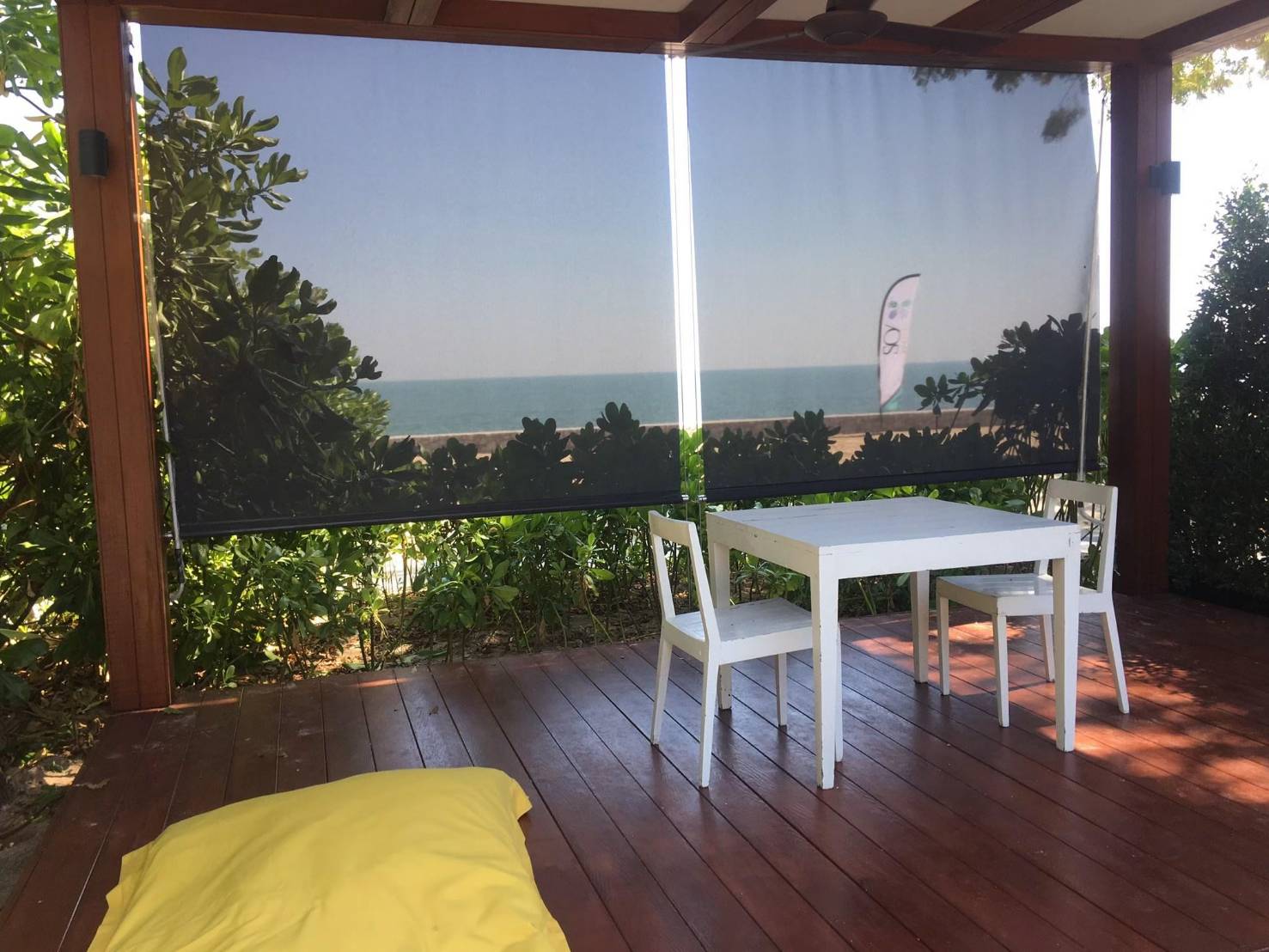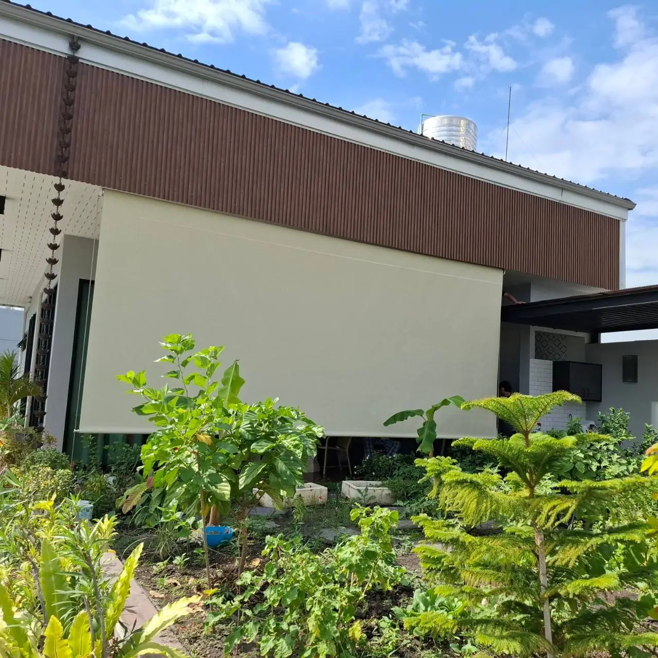 กันสาดแนวตั้งระบบสายไกด์สแตนเลส SUS316 ขนาด 4 มม. พร้อมชุด rigging คุณภาพสูงระดับงานเรือ ทนแรงลมและสนิม เหมาะสำหรับติดตั้งในพื้นที่กลางแจ้ง ทั้งแนวตรงหรือเอียงได้ถึง 45 องศา มาพร้อมผ้า U400 Series ที่ออกแบบมาเพื่อใช้งานกลางแจ้งโดยเฉพาะ มีค่าความโปร่ง 4% ให้แสงผ่านได้ในระดับพอเหมาะ มองเห็นวิวภายนอกได้ดี และช่วยลดความร้อนได้อย่างมีประสิทธิภาพ แข็งแรง ทนฉีกขาดมากกว่าผ้าทั่วไปถึง 10 เท่า เหมาะอย่างยิ่งสำหรับ รีสอร์ท ริมสระน้ำ ร้านอาหาร คาเฟ่ หรือพื้นที่ที่ต้องการความร่มเย็น ควบคุมแสง และเพิ่มความเป็นส่วนตัว โดยไม่ปิดกั้นบรรยากาศแบบ open-air กันสาดแนวตั้งรุ่นนี้คือทางเลือกที่ตอบโจทย์ทั้งด้านดีไซน์ ความทนทาน และการใช้งานจริงในพื้นที่ภายนอกอย่างแท้จริง