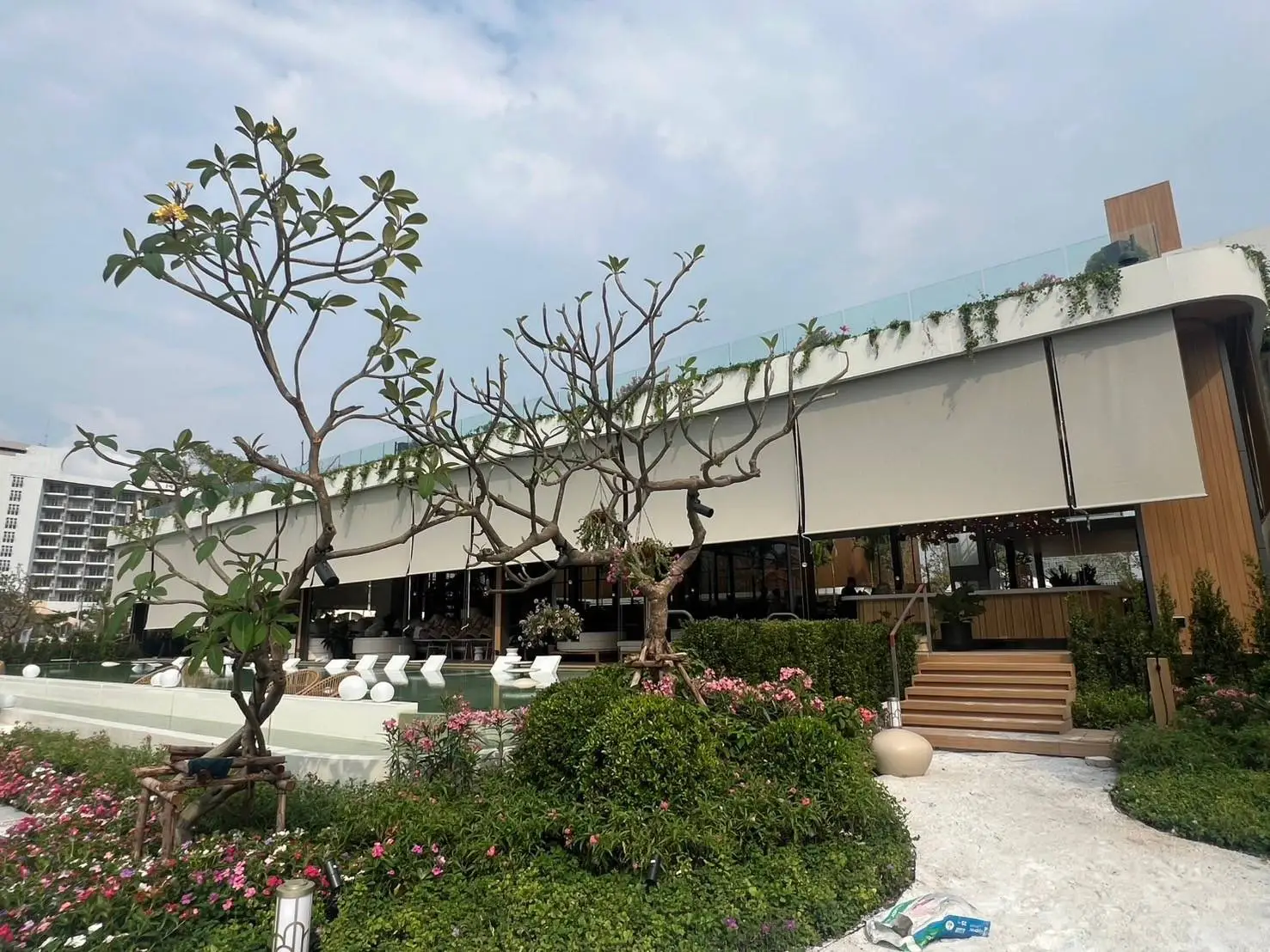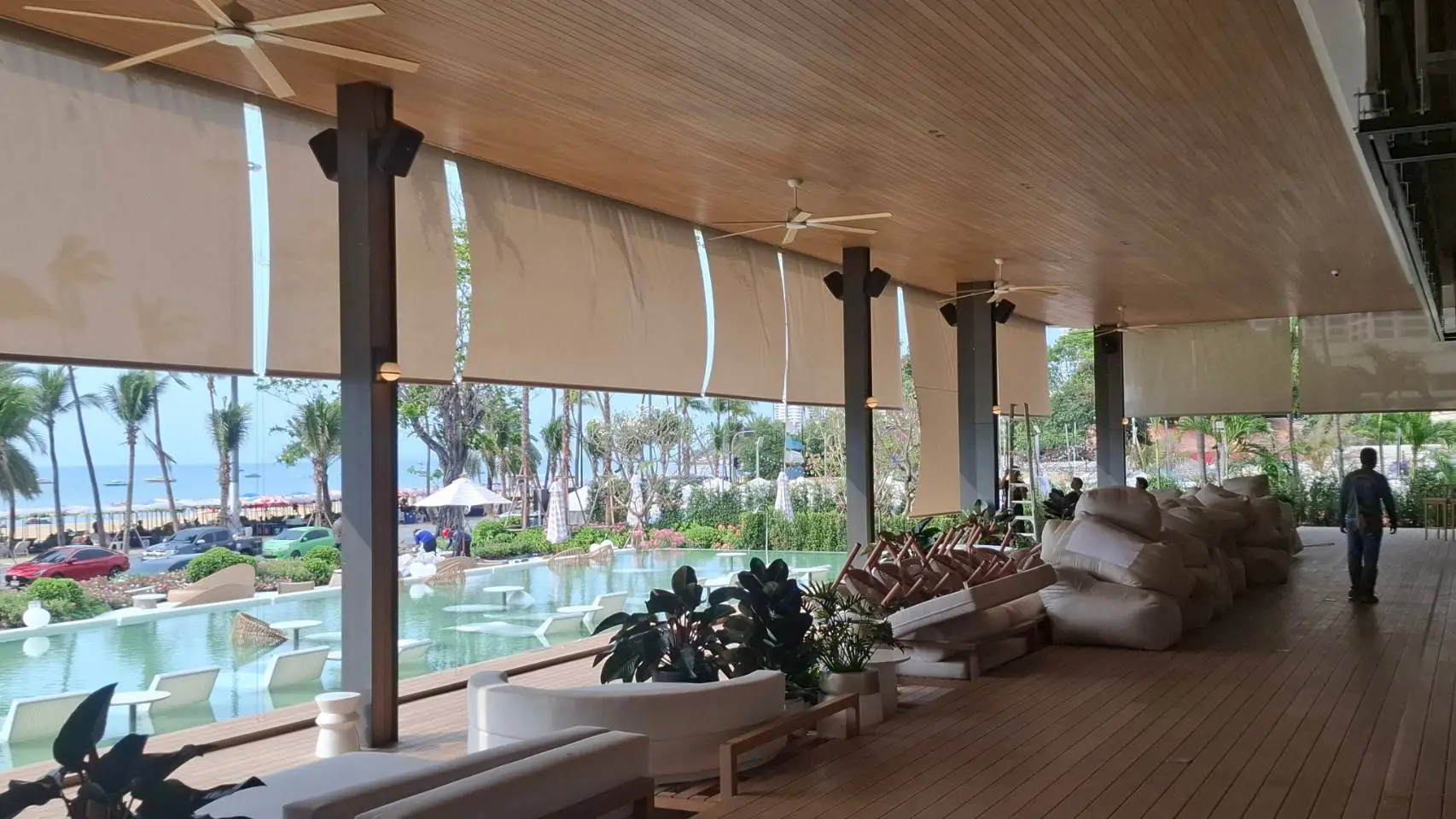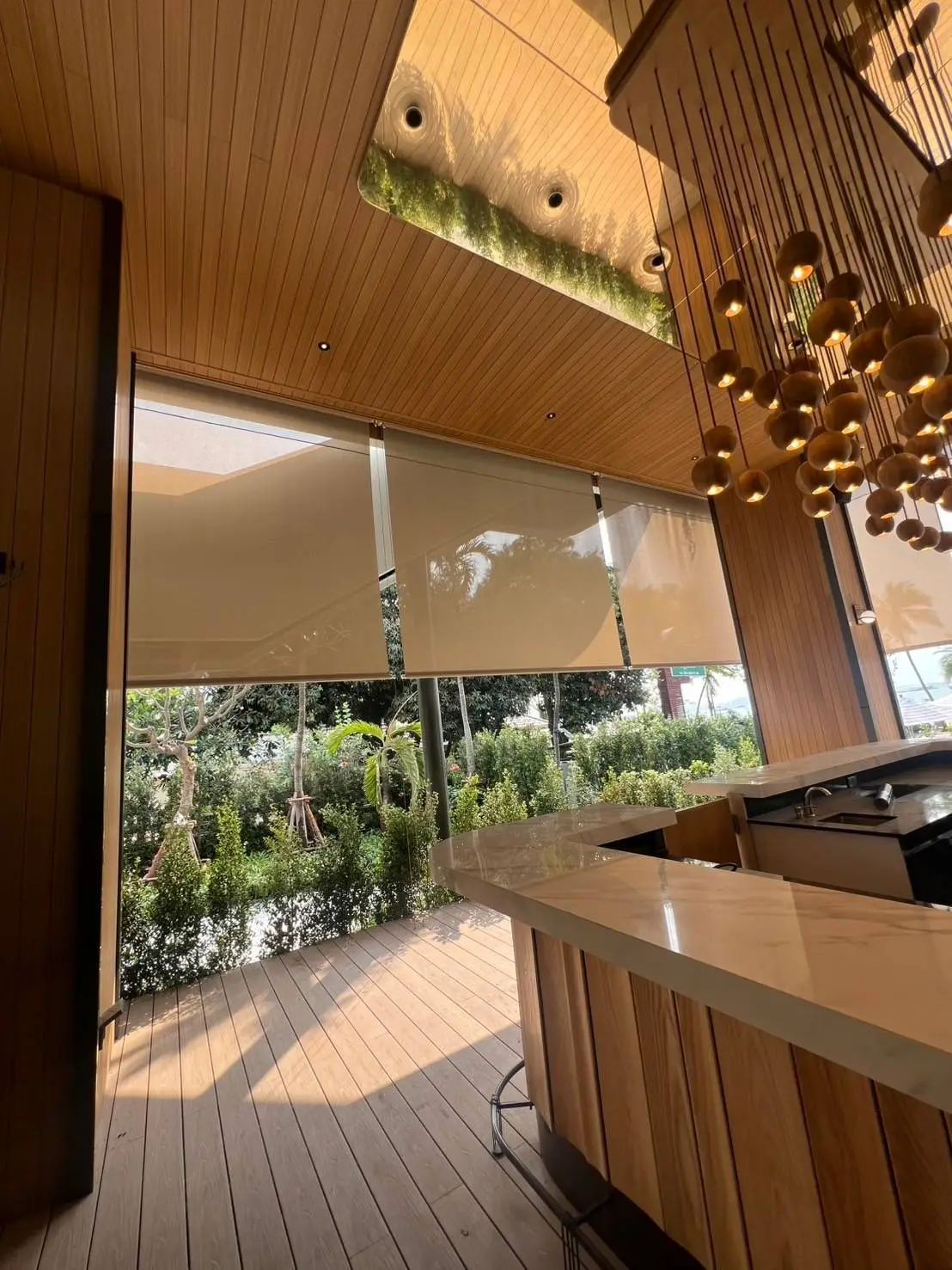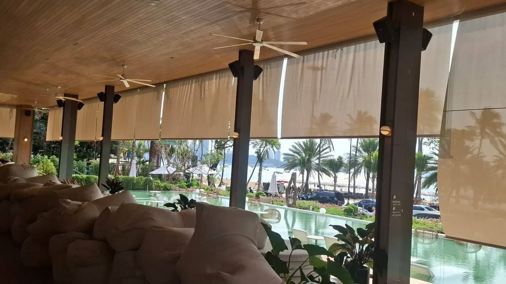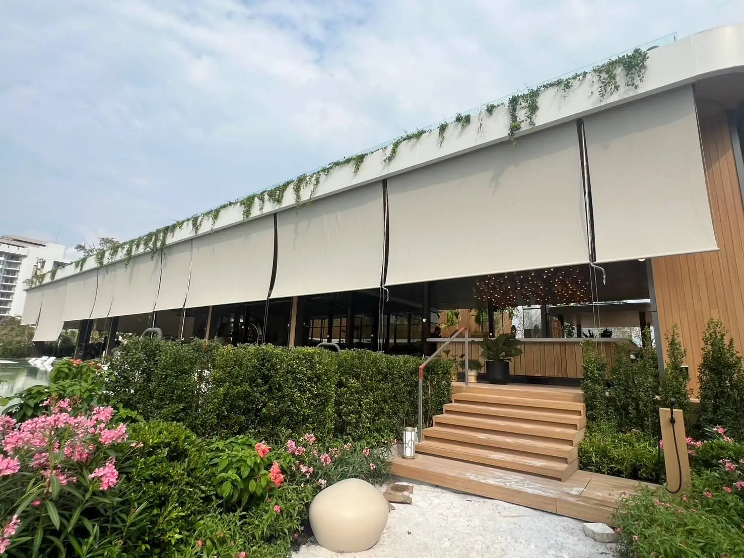 กันสาดแนวตั้งระบบสายไกด์สแตนเลส SUS316 ขนาด 4 มม. พร้อมชุด rigging คุณภาพสูงระดับงานเรือ ทนแรงลมและสนิม เหมาะสำหรับติดตั้งในพื้นที่กลางแจ้ง ทั้งแนวตรงหรือเอียงได้ถึง 45 องศา มาพร้อมผ้า U400 Series ที่ออกแบบมาเพื่อใช้งานกลางแจ้งโดยเฉพาะ มีค่าความโปร่ง 4% ให้แสงผ่านได้ในระดับพอเหมาะ มองเห็นวิวภายนอกได้ดี และช่วยลดความร้อนได้อย่างมีประสิทธิภาพ แข็งแรง ทนฉีกขาดมากกว่าผ้าทั่วไปถึง 10 เท่า เหมาะอย่างยิ่งสำหรับ รีสอร์ท ริมสระน้ำ ร้านอาหาร คาเฟ่ หรือพื้นที่ที่ต้องการความร่มเย็น ควบคุมแสง และเพิ่มความเป็นส่วนตัว โดยไม่ปิดกั้นบรรยากาศแบบ open-air กันสาดแนวตั้งรุ่นนี้คือทางเลือกที่ตอบโจทย์ทั้งด้านดีไซน์ ความทนทาน และการใช้งานจริงในพื้นที่ภายนอกอย่างแท้จริง